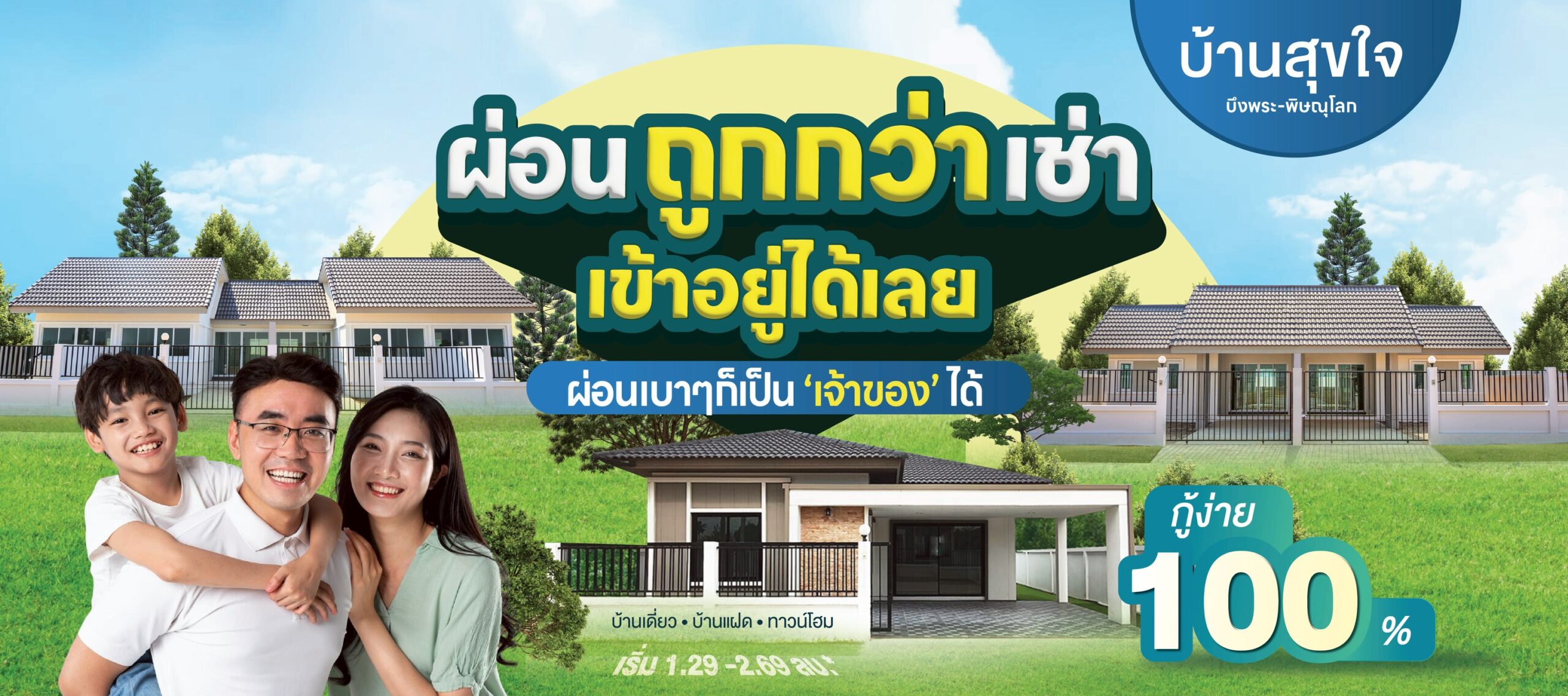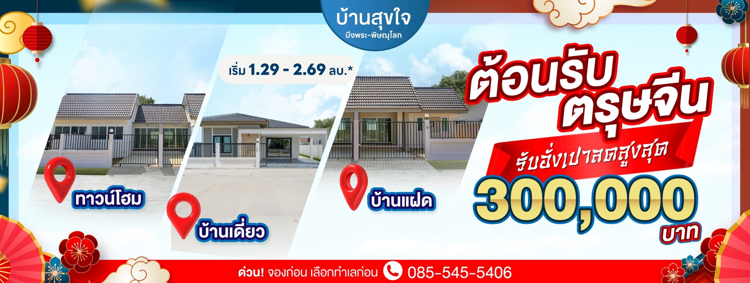 บ้านสุขใจ บึงพระจังหวัดพิษณุโลก โครงการบ้านแฝด และ ทาวน์โฮม ชั้นเดียว สังคมคุณภาพในราคาที่ทุกคนเอื้อมถึง